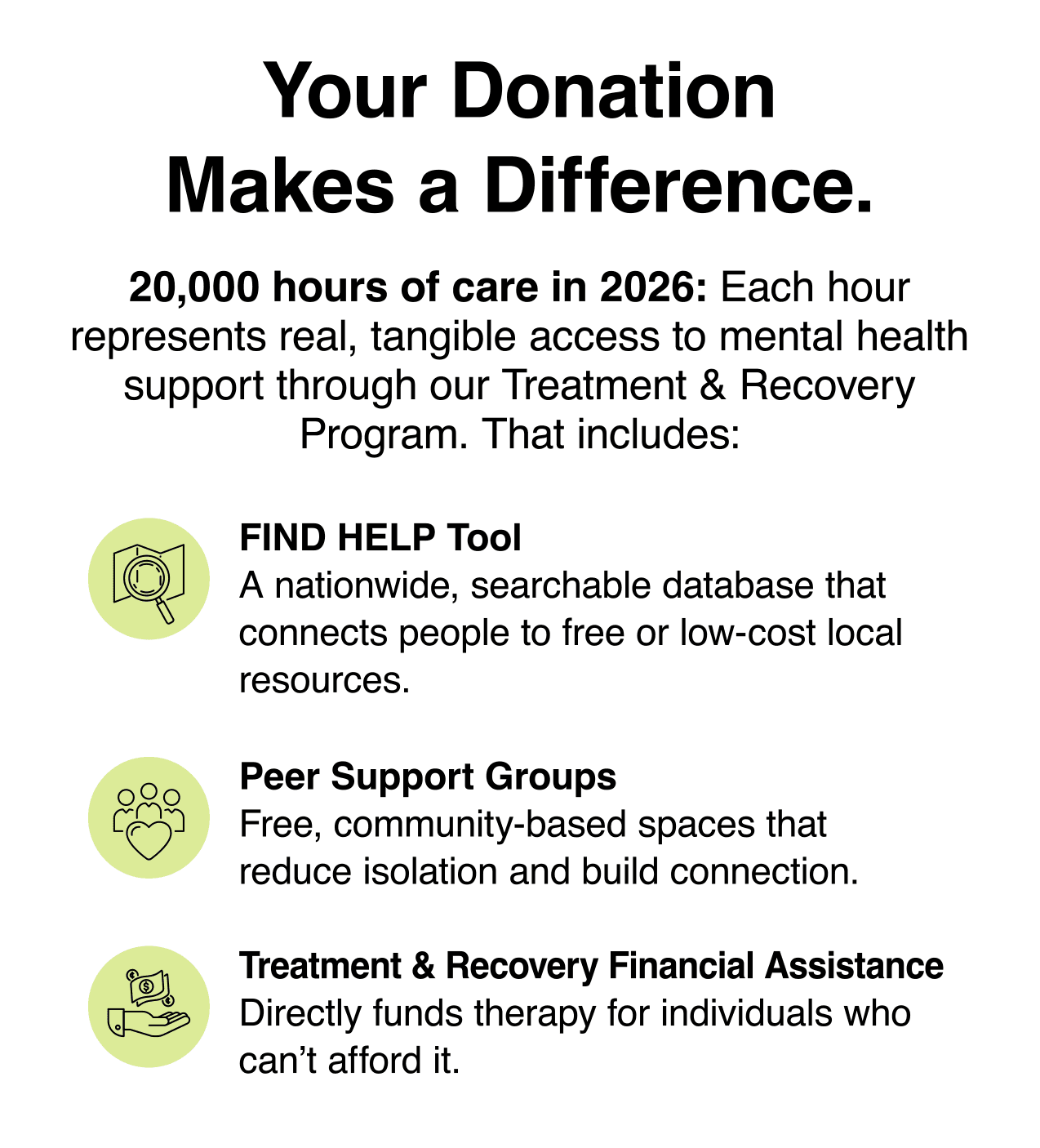 We invite you to become a Founding Partner of the 20,000 Hours of Care campaign. Your support can directly remove barriers to therapy, expand peer connection, and sustain national outreach to people in crisis. Together, we can preserve hope with real help and save lives.